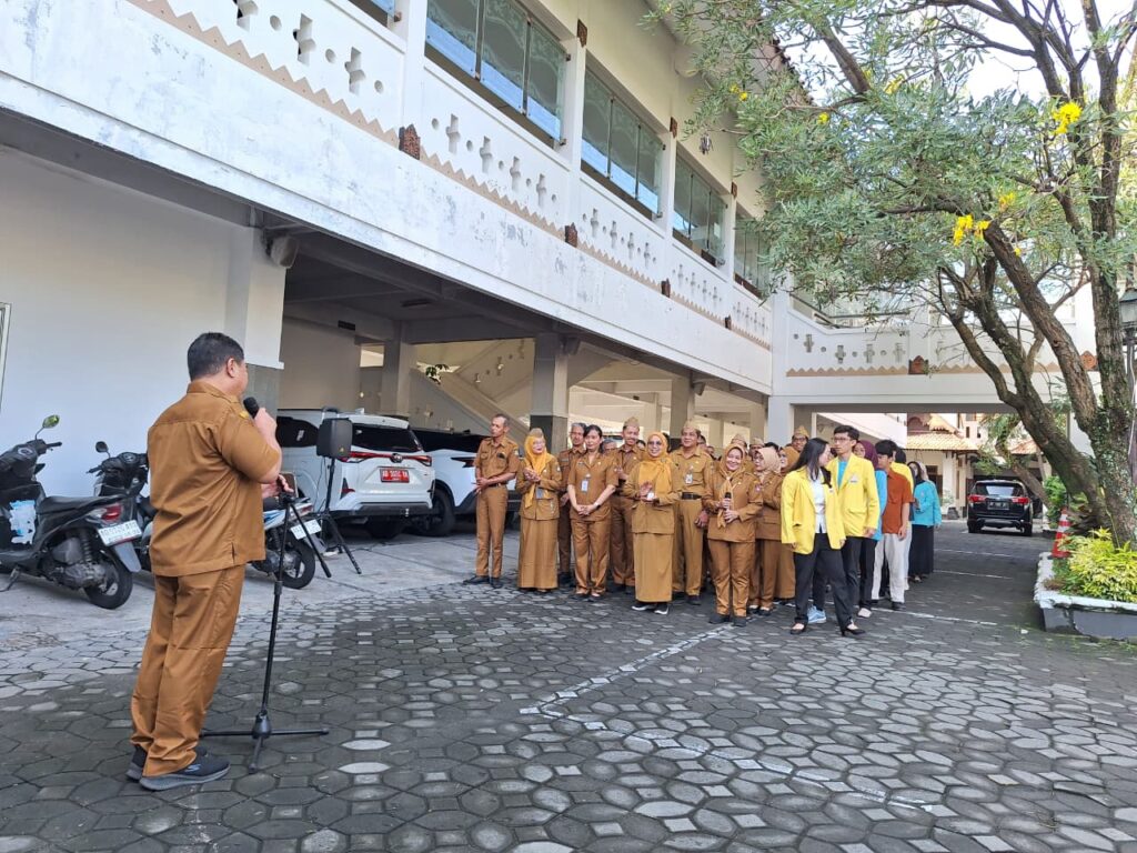 SURAKARTA – Sekretariat DPRD Kota Surakarta menggelar apel pagi rutin pada Senin (30/3) di lingkungan kantor DPRD Kota Surakarta. Apel tersebut menjadi momentum penyampaian arahan pimpinan sekaligus koordinasi agenda kerja yang akan berlangsung dalam waktu dekat.